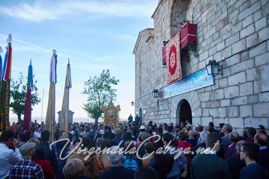 Una vez en el Cabezo cada cofradía se organiza en distintas casas y desde allí subirán al Santuario a rendir culto a la Virgen. Las cofradías se suceden en el interior de la iglesia saludando a la Imagen y las calzadas son una marea de peregrinos, algunos de rodillas o descalzos cumplen promesas a la Virgen.