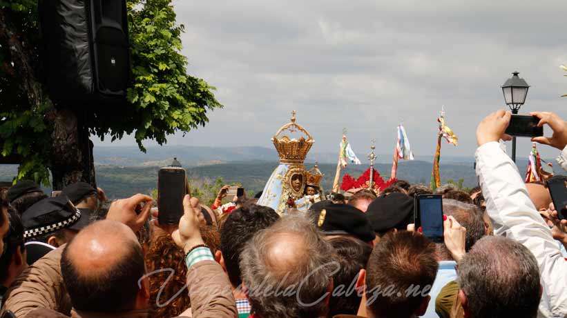 El pueblo aplaude despidiendo a las carretas, jinetes y amazonas ataviadas de gala, y, como no, numerosas mujeres montadas en jamugas (sillas en forma de tijera en las que las señoras se sientan de lado, sobre dóciles mulos o borriquillos) que desfilan lanzando gritos de alegría a la multitud ¡VIVA LA VIRGEN DE LA CABEZA!